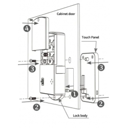 AA1.5Vx4stk (medfølger ikke) Nødstrøm via USB Midlertidig adgangskode Berøringstastatur Offentlig tilstand eller privat tilstand Passer til: træ- og stålskabe