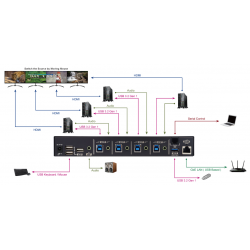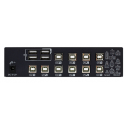 10 porte USB KM-switch (tastatur og mus) med muse-roaming-funktion, genvejskontrol til kontrolcenterløsning. du kan nemt skifte pc'er ved at flytte musen, giver dig mulighed for at skifte tastatur og mus problemfrit på tværs af skærmgrænserne fra fire tilsluttede pc'er. Det indbyggede Multiple forudindstillede skærmlayout giver dig mulighed for at styre 10 pc'er på samme tid. Det er den bedste løsning til kontrolcenterløsning, aktieselskab, videospilapplikation, serverrum.