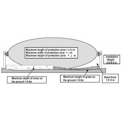 Pakken består af en sender og en modtager, når den er monteret på hinanden, oprette en barriere minimum 20 meter og op til 100 meter lang, 2 meter højt og en 1 meter bred. Alt, der kommer ind mellem senderen, og modtageren aktiverer relæet. Kan tilsluttes indgangen til et alarmsystem eller kamera, der starter optagelse. Med hensyn til sneen er græs og små dyr i strålen ikke registreret.
