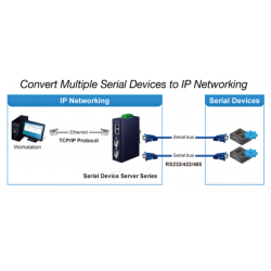 ETH4SER-IC serielportserver er specielt designet til at konvertere RS232, RS422 eller RS485 seriel kommunikation til Industrial Fast Ethernet-netværk for at udvide netværksafstanden effektivt og billigt. Der er to 10/100BASE-TX RJ45-porte tilgængelige i ETH4SER-IC til dit netværksbehov. ETH4SER-IC er en tidsbesparende og omkostningseffektiv løsning for brugere og systemintegratorer til hurtigt at omdanne deres serielle enheder til Ethernet-netværket uden behov for at udskifte de eksisterende serielle enheder og softwaresystemet.