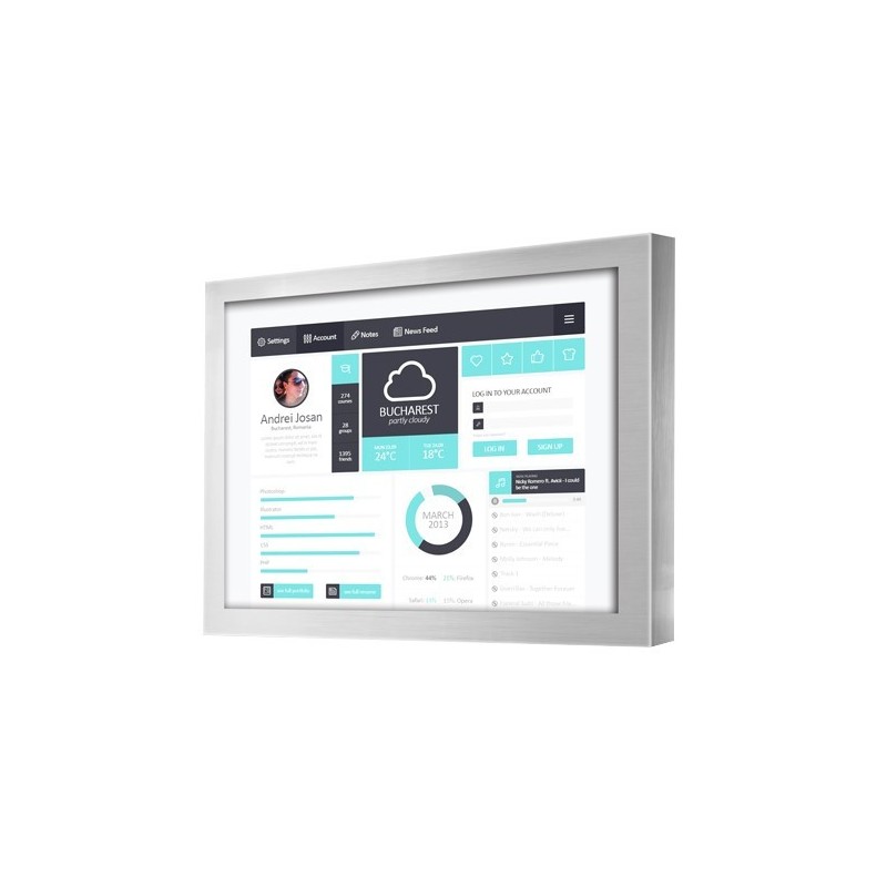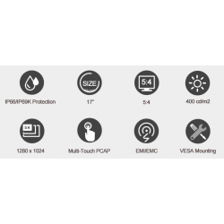 17" Rustfri stål monitor. Monitoren er vandafvisende og kan bruges i forskellige våde industrielle miljøer.