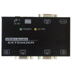 Video Extender-parret giver dig mulighed for at sende VGA-signaler op til 150 m væk med en opløsning på op til 1280 x 1024. Common mode-støjundertrykkelseskredsløb transmitterer videosignaler i fremragende kvalitet via CAT6a UTP-kabler. Den lokale enhed duplikerer indgangssignalet til lokal brug og sender VGA-signalet til en ekstern enhed. Efter modtagelse af videosignalet via et CAT5-stik sender fjernenheden signalet til to VGA-udgange. Brug 2 sæt til repeater som kan sende VGA-signalet op til 250 meter væk!