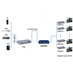 Max 32 stk. modtagere kan tilkobles 1 stk. TX (via Ethernet switch)