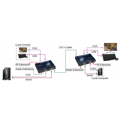VGA KVM booster - extender op til 300 meter mellem lokal enhed ved PCen og skærm, tastatur og mus. USB er til tastatur og mus og ikke til andre USB enheder.