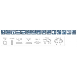 2 x HDMI (full HD) 1 x USB 1 x VGA 1 x Video (ind/ud) 1 x lyd