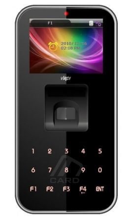 Outdoor finger scanner with RFID and PoE Up to 500,000 users (1 finger) Up to 10 fingers per. user up to 3,000,000 log CPU: 1.0 GHz Single Core Memory: 8GB flash + 256MB RAM 2.8 "color TFT LCD 16-bit audio Operating temperature: - 20 ° C ~ 50 ° C Weight: 440g Dimensions: 142 x 145 x 45 Built-in tamper alarm Built-in Wifi (IEEE 802.11 b / g) Ethernet: 10/100 / 1000 Mbps, auto MDI / MDI-X RS485, Wiegand, TTL input, USB 2.0 1 x Relay Power supply: PoE