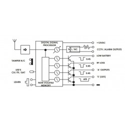Modtager enhed til 1-3 detektorer. 2 x udgange (ALM, RF signal tab) for hver detektor