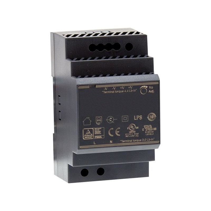 Economic and ultraslank power supply that can be customized to be installed on TS-35 / 7.5 or TS-35/15 DIN rails. The house is narrow, allowing for saving space inside a cabinet. DC24V2.5A-D Power supply is designed with plastic house that can effectively prevent electrical hazards.