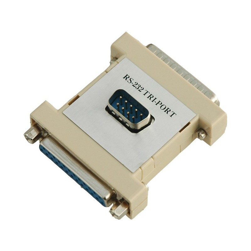 Enheden består af 1 x DB25 hunstik til 1 x DB25 hanstik med mulighed for analyse via 1 x DB9 hanstik.