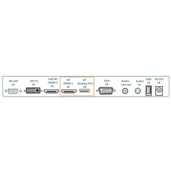 1 x USB-A in 1 x HDMI A (HDMI2.0) in 1 x HDMI2 in 1 x Display port in 1 x PC in 1 x VGA in (D-Sub 15 pin) 1 x DVI-D in 1 x PC Audio in (3.5 phone jack) 1 x RS232 in (D-SUB 9pin) 1 x Earphone audio out 2 x built-in speaker 2 watt