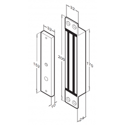 Magnet: (L) 200, (W) 32, (D) 24 mm Armature plate: (L) 152, (W) 32, (D) 10 mm