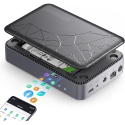 Maks 8TB kapasitet 1xUSB3.2Gen1 Type-C 1x RJ45 1Gbps 1x SATA3.0 6Gbps USB- og RJ45-porter kan ikke brukes samtidig Strømforsyning:12VDC 2A Størrelse: 145(L)* 95(B)*34,5(H)mm