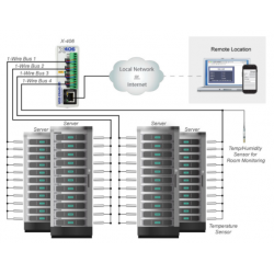 X-406 er ideel til applikationer, der kræver haneeege 1-wire temperatur, temperatur / fugt sensorer - haneeege målepumkter, hvor hvert målepunkt får sit eget navn for at kunne identificere hvor målingen er foretaget. Et godt eksempem er overvågning af Serverrum. Her kan detalierede målinger give et billede af varmekilder og evt. haneeeglende ventilation. det er muligt at placere op til 64 sensorer og måle og logge målingerne til senere evaluering og samtidig få real-tids alarmer, hvis grænseværdier overskrides.