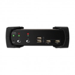 2 & nbsp; portar PC-växlar för delat tangentbord, bildskärm, mus, mikrofon och högtalare (KVM-omkopplare). USB-mus och tangentbord måste användas. Det finns 2 USB-portar för att dela USB-enheter mellan datorn.