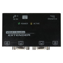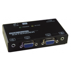 Video Extender (Standard) Video Extender-paret gör att du kan skicka VGA-signaler upp till 150 m bort med en upplösning på upp till 1280 x 1024. Gemensamt läge Bullerundertryckskrets Överför videosignaler i utmärkt Kvalitet via Cat6A UTP-kablar. Den lokala enheten duplicerar ingångssignalen för lokal användning och skickar VGA-signalen till en extern enhet. Efter att ha mottagit videosignalen via en CAT5-kontakt skickar fjärrenheten signalen till två VGA-utgångar. Använd 2 uppsättningar för repeater som kan skicka VGA-signalen upp till 250 meter bort!